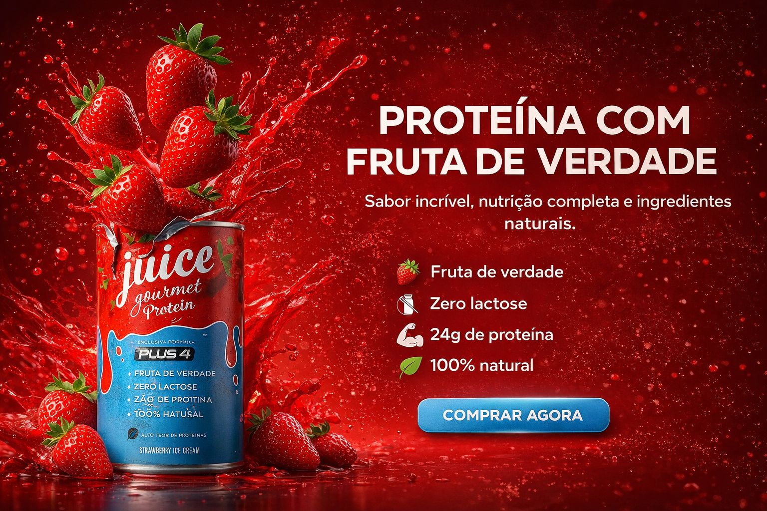 Juice Gourmet Protein Morango - Vitaminar (450gr)