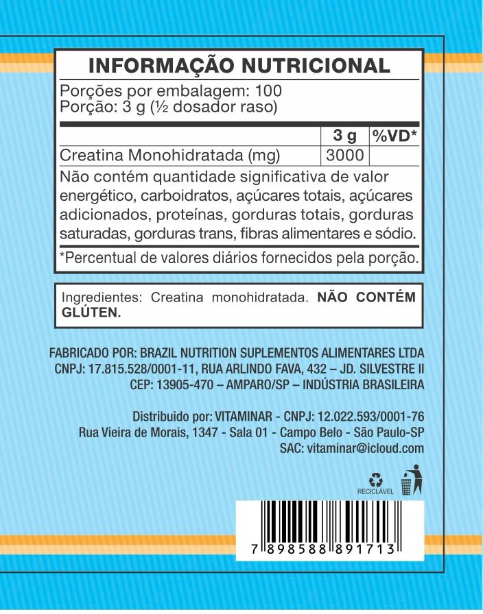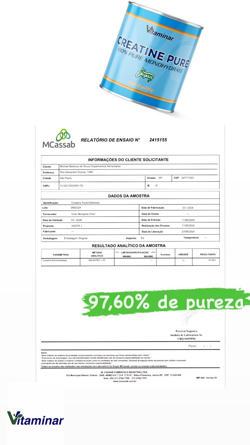 Creatina Vegana Pura Vitaminar – 300 gramas