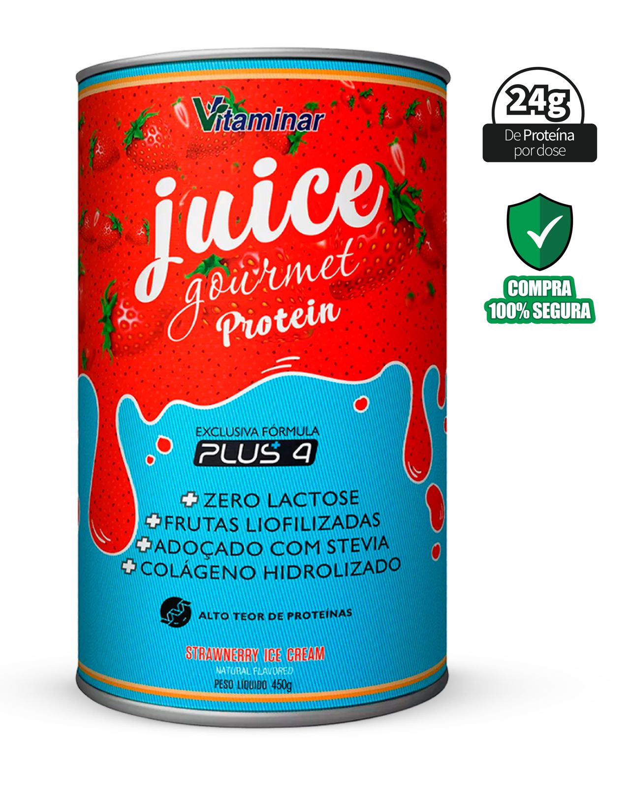 Juice Gourmet Protein Morango - Vitaminar (450gr)